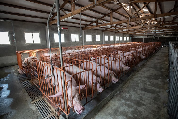 Une autre exception concerne la liberté de mouvement des truies. Dans les élevages conventionnels, les truies sont généralement maintenues dans des cages dans lesquelles elles peuvent seulement se lever et se coucher pendant de longues périodes (entre huit et dix semaines par cycle de reproduction).